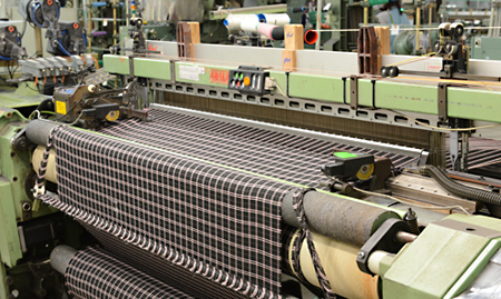 毛織物は、蒸気で蒸すことでセットされ、型崩れしない織物になります。 |