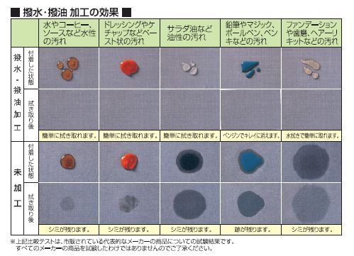 ※水をはじいたり、油をはじいたりするので防汚加工にも、応用されている。
